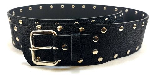 – Cinturon ancho con tachas circulares con hebilla Cuadrada en color niquel plateado