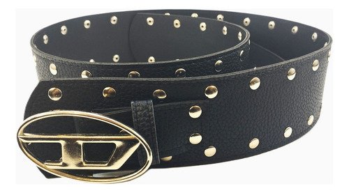 – Cinturon ancho con tachas circulares con hebilla D en color niquel plateado