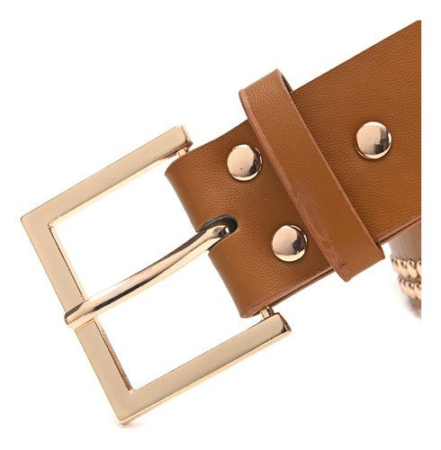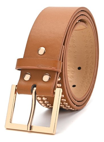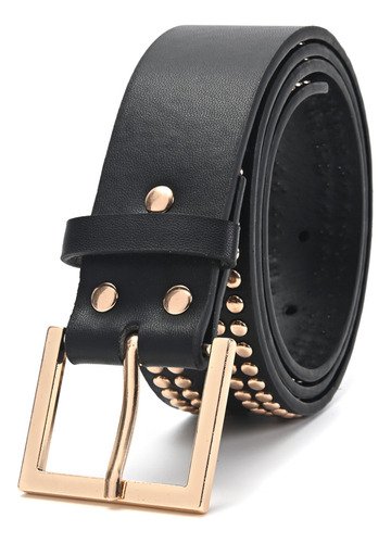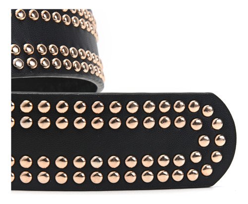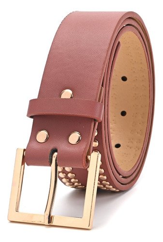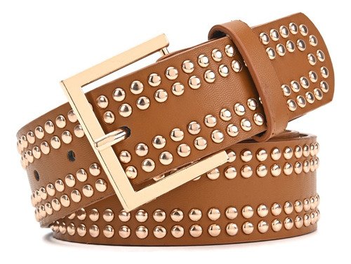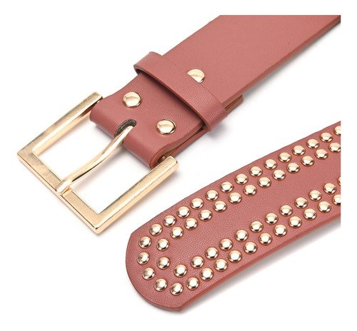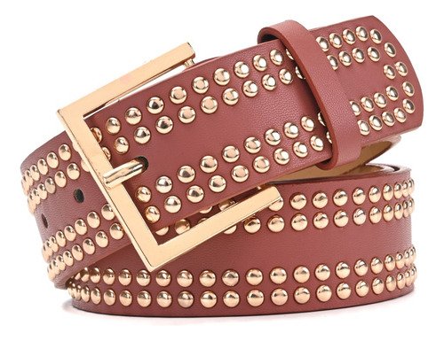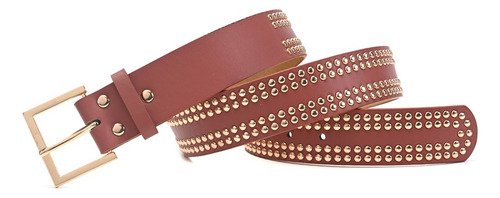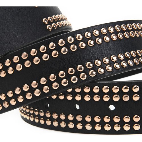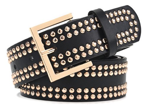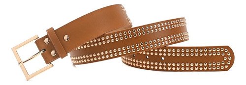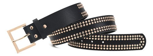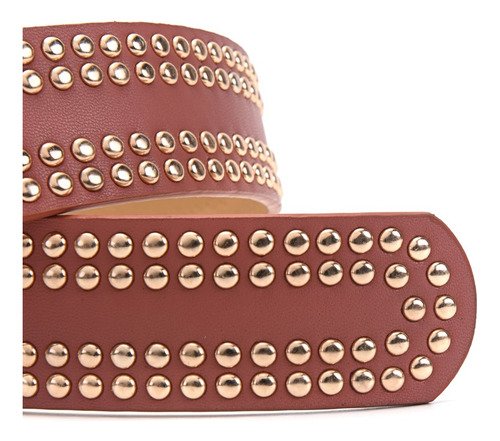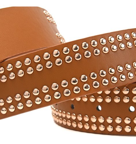 Cinturon Dama Skora Eco Cuero Con Remaches Dobles Dorados