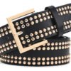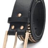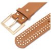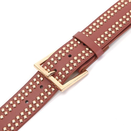 – Este cinturón de dama Skora con remaches dorados es el complemento perfecto para cualquier outfit elegante y sofisticado.
