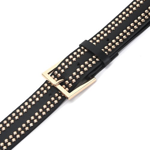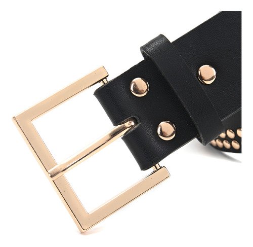 – Cinturón fabricado en cuero ecológico con remaches y hebilla dorada