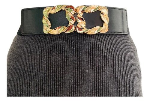 – Atrévete a destacar con este cinturón Eco Cuero Elástico Trendy en color negro con hebilla dorada de diseño cuadrado. ¡No te arrepentirás!