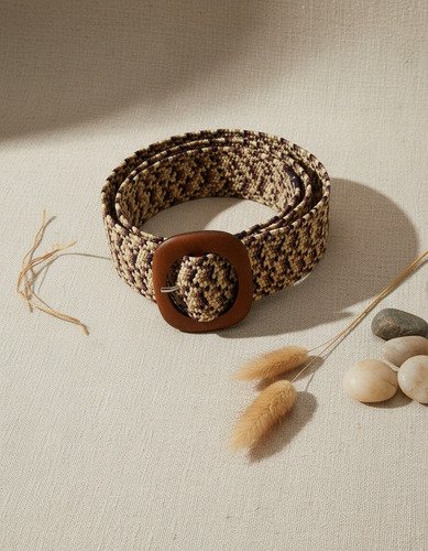 – Cinturon de rafia elastizado con hebilla de madera con pasante, modelo 6893