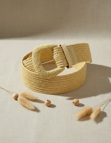 – Cinturon de rafia elastizado con hebilla forrada con pasador , modelo 6886