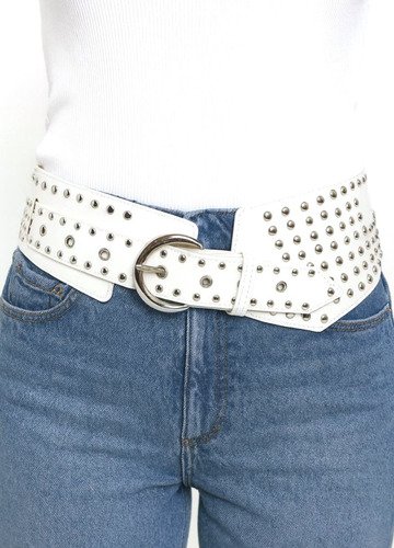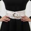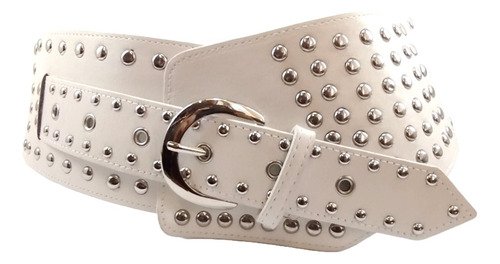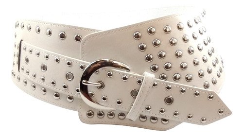 Faja Corset Cinturon Ancho Eco Cuero Con Tachas 9 Cm. Mujer Blanco Lisa 97