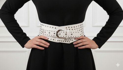 – La hebilla circular, disponible en colores plateado y bronce, añade un toque de distinción a cualquier atuendo. Ideal para complementar tanto looks casuales como formales, este cinturón se convierte en un elemento versátil en el guardarropa femenino. Las tachas aportan un detalle moderno que resalta la personalidad de quien lo lleva.