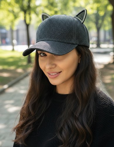 – Descubre la gorra con visera y orejas de gatito de la marca 11 ONLINE, diseñada especialmente para mujeres que buscan un toque divertido y único en su estilo. Este modelo, ideal para la temporada de primavera/verano 2025, combina la funcionalidad de una gorra con la originalidad de sus detalles brillantes y glitter, perfectos para destacar en cualquier ocasión.