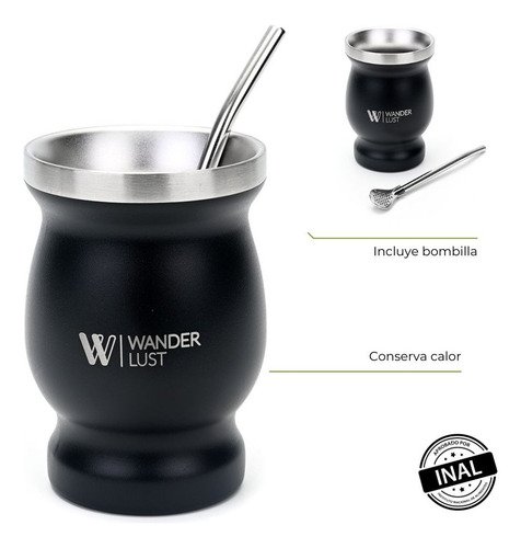 – Mate térmico de acero inoxidable con bombilla niquelada