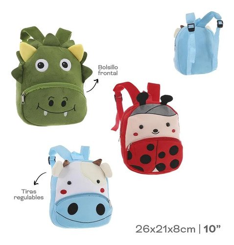Mochila Infantil Jardin Animales 21 X 26 Cm Con Bolsillo Rojo Vaquita San Antonio