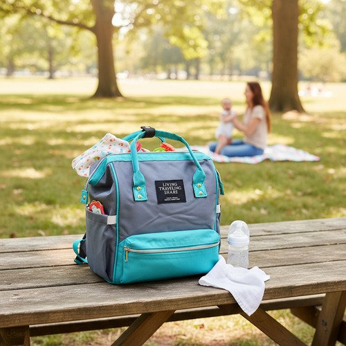 – La Mochila Maternal Térmico Boca Pez Bolsillo Seguridad de la marca Living Traveling Share es ideal para mamás modernas y prácticas.